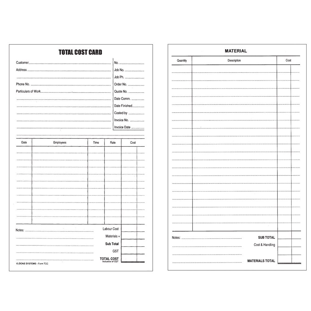 Zions Total Cost Cards System 125x205mm Pack of 100